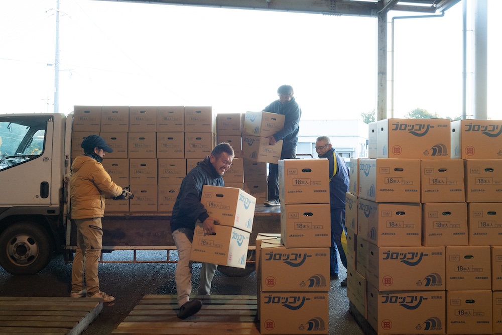 集荷されたブロッコリーは検品後、年末年始の食卓で皆さんに美味しく食べてもらえるように、全国各地に輸送されます。